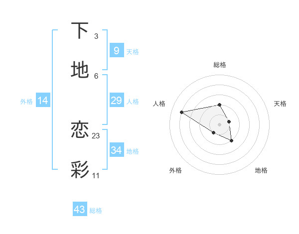 下地 恋彩さんを姓名の画数から五運を鑑定