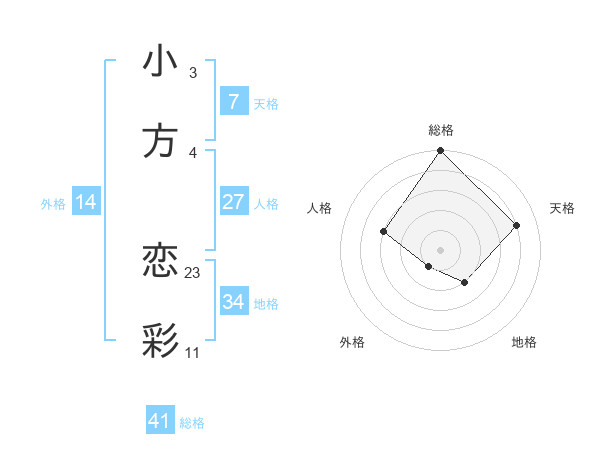 小方 恋彩さんを姓名の画数から五運を鑑定
