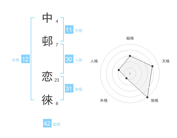 中邨 恋徠さんを姓名の画数から五運を鑑定