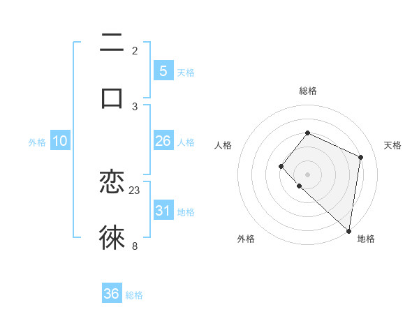 二口 恋徠さんの地格は31画の5点!