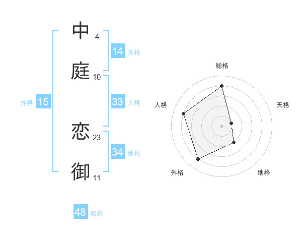 中庭 恋御さんの総格は48画の4点!