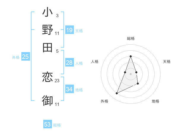 小野田 恋御さんを姓名の画数から五運を鑑定