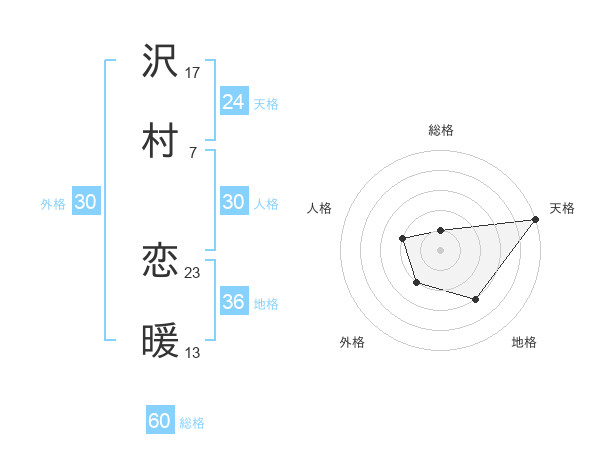 沢村 恋暖さんを姓名の画数から五運を鑑定