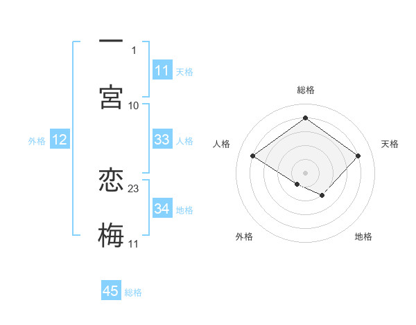 一宮 恋梅さんを姓名の画数から五運を鑑定