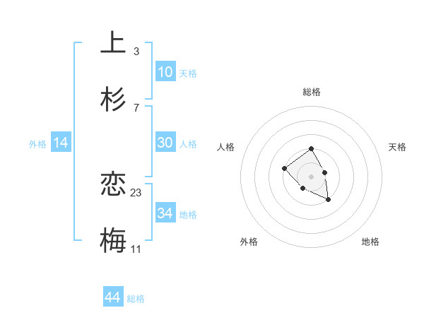 上杉 恋梅さんの総格は44画の2点!