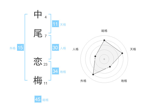中尾 恋梅さんを姓名の画数から五運を鑑定