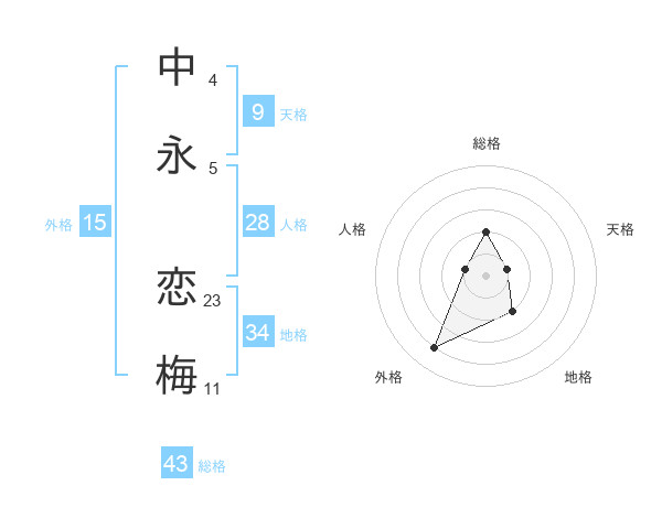 中永 恋梅さんを姓名の画数から五運を鑑定
