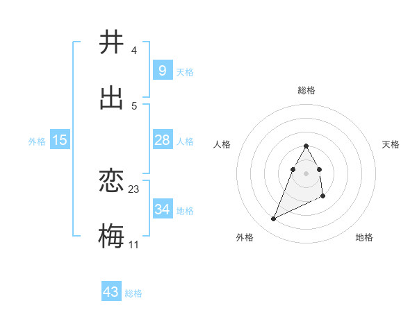 井出 恋梅さんの総格は43画の2点!