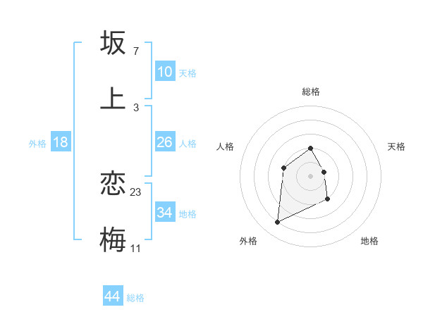 坂上 恋梅さんを姓名の画数から五運を鑑定