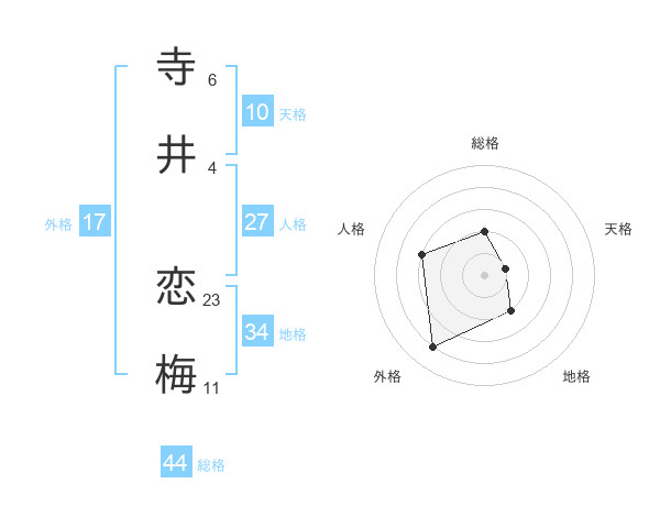 寺井 恋梅さんを姓名の画数から五運を鑑定