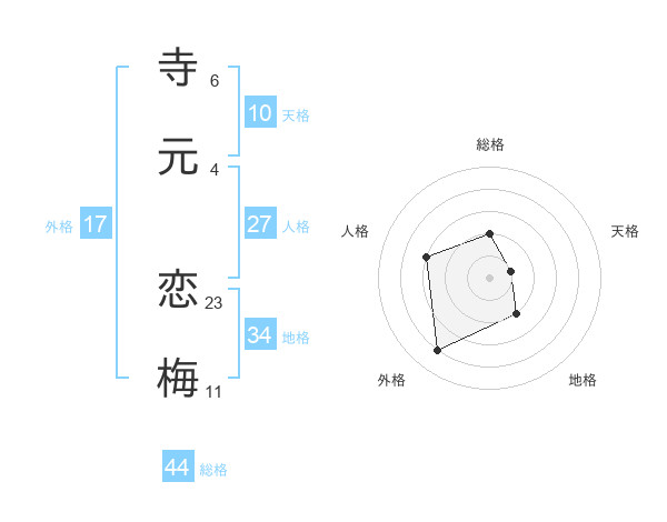 寺元 恋梅さんを姓名の画数から五運を鑑定
