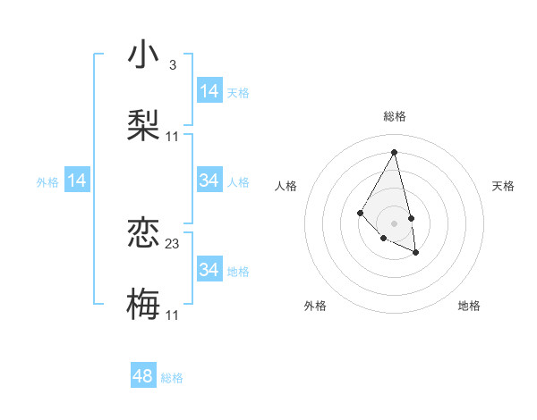 小梨 恋梅さんを姓名の画数から五運を鑑定