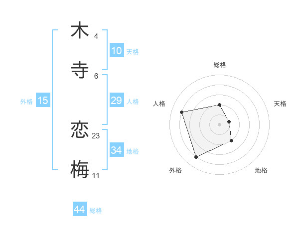木寺 恋梅さんの総格は44画の2点!