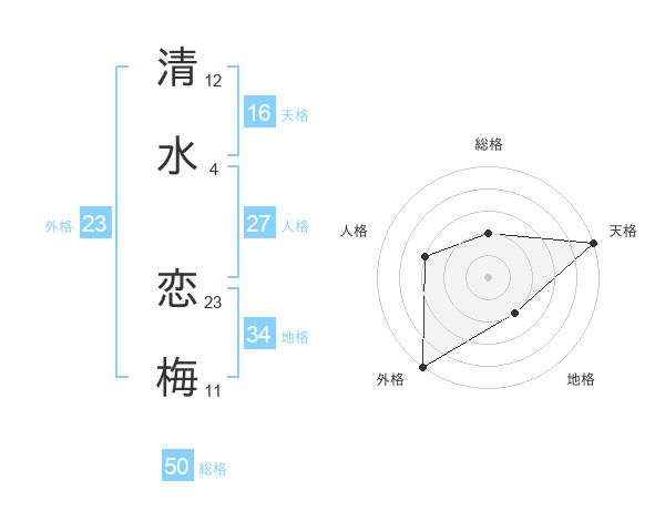清水 恋梅さんを姓名の画数から五運を鑑定