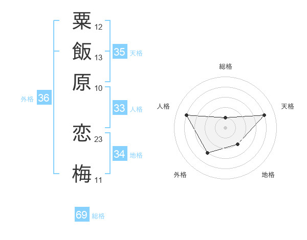 粟飯原 恋梅さんを姓名の画数から五運を鑑定