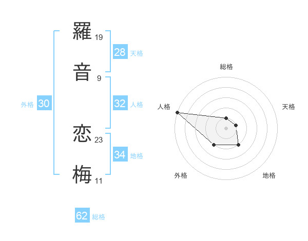 羅音 恋梅さんを姓名の画数から五運を鑑定