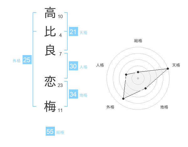 高比良 恋梅さんの天格は21画の5点!