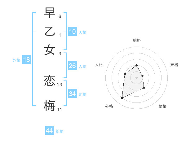 早乙女 恋梅さんの総格は44画の2点!