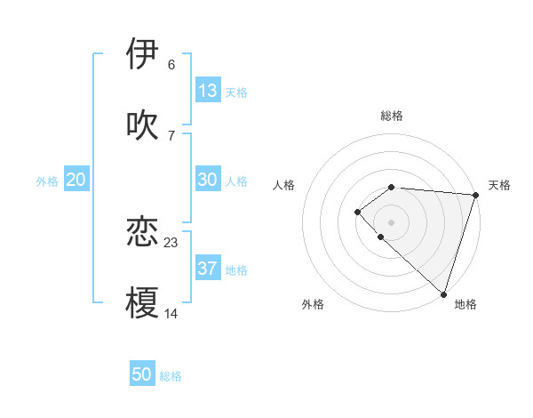 伊吹 恋榎さんを姓名の画数から五運を鑑定