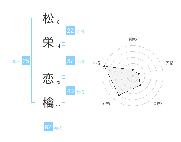 松栄 恋檎さんの総格は62画の1点!