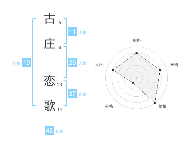 古庄 恋歌さんを姓名の画数から五運を鑑定