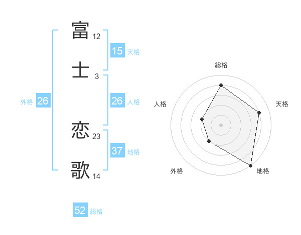 富士 恋歌さんの総格は52画の4点!