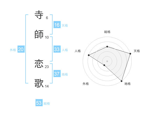 寺師 恋歌さんの総格は53画の3点!