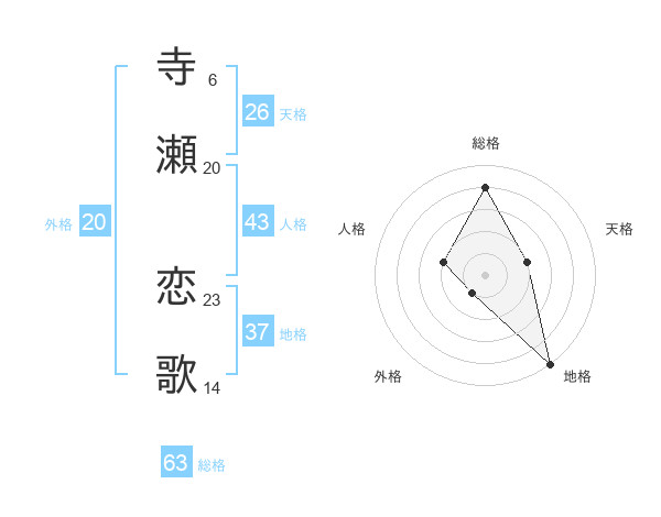 寺瀬 恋歌さんを姓名の画数から五運を鑑定