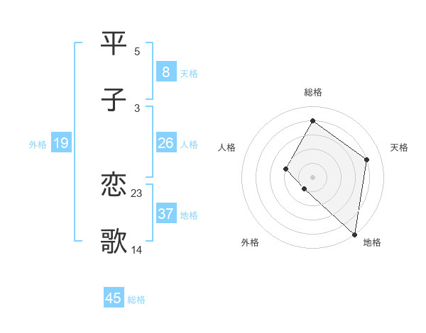 平子 恋歌さんの天格は8画の4点!
