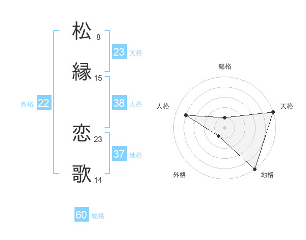 松縁 恋歌さんを姓名の画数から五運を鑑定