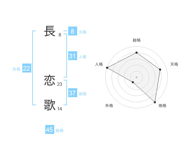 長 恋歌さんの総格は45画の4点!