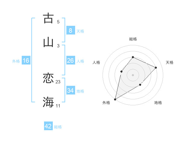 家系が持つ宿命的な運勢を表します。祖先から受け継いだ苗字ですので自分の力が及びません。家柄を象徴します。