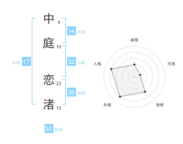 中庭 恋渚さんを姓名の画数から五運を鑑定