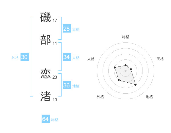 磯部 恋渚さんを姓名の画数から五運を鑑定
