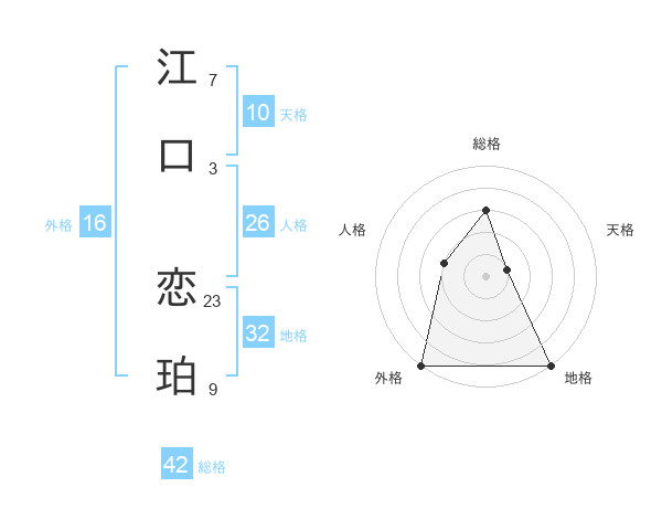 江口 恋珀さんを姓名の画数から五運を鑑定