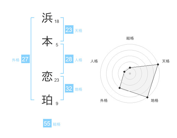 浜本 恋珀さんを姓名の画数から五運を鑑定