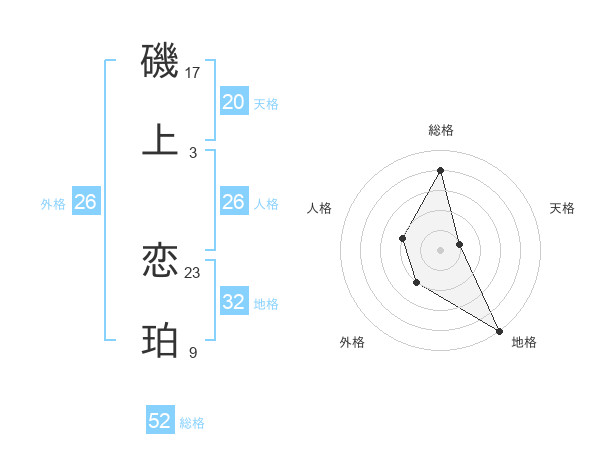 磯上 恋珀さんを姓名の画数から五運を鑑定