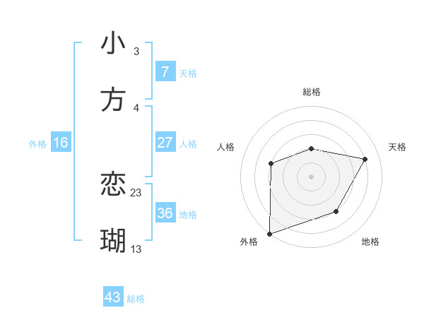 小方 恋瑚さんの総格は43画の2点