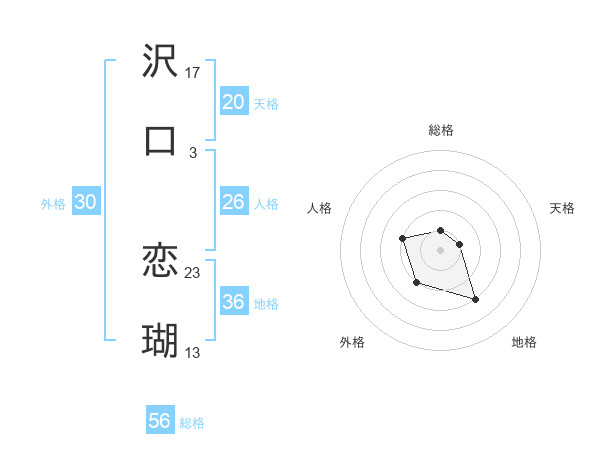 沢口 恋瑚さんを姓名の画数から五運を鑑定