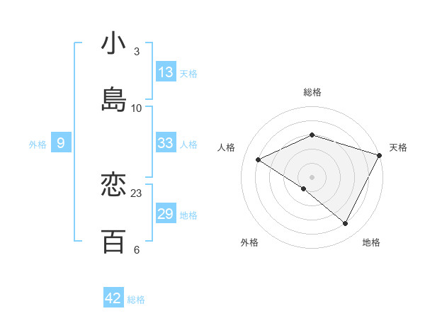小島 恋百さんの天格は13画の5点!