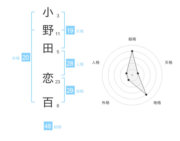 小野田 恋百さんを姓名の画数から五運を鑑定