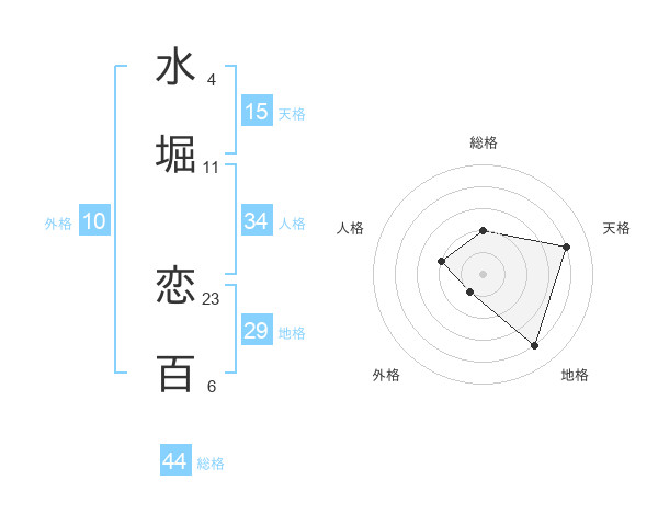 水堀 恋百さんを姓名の画数から五運を鑑定
