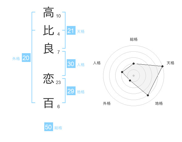 高比良 恋百さんの総格は50画の2点!