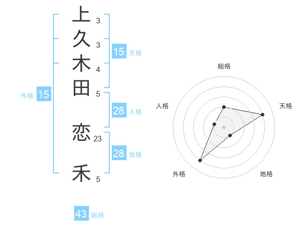 上久木田 恋禾さんを姓名の画数から五運を鑑定
