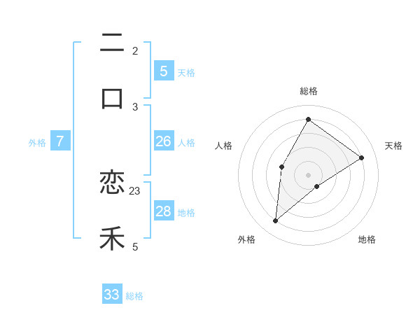 二口 恋禾さんの天格は5画の4点!