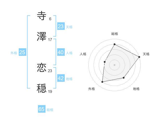 寺澤 恋穏さんの総格は65画の4点!