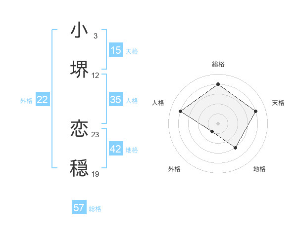 小堺 恋穏さんの総格は57画の4点!