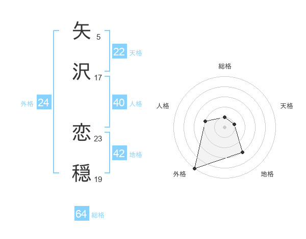 矢沢 恋穏さんを姓名の画数から五運を鑑定