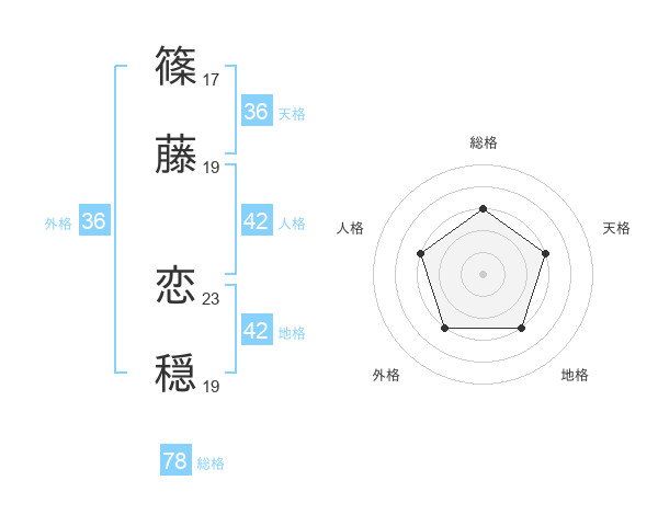篠藤 恋穏さんの総格は78画の3点!