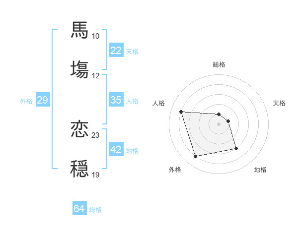 馬塲 恋穏さんを姓名の画数から五運を鑑定